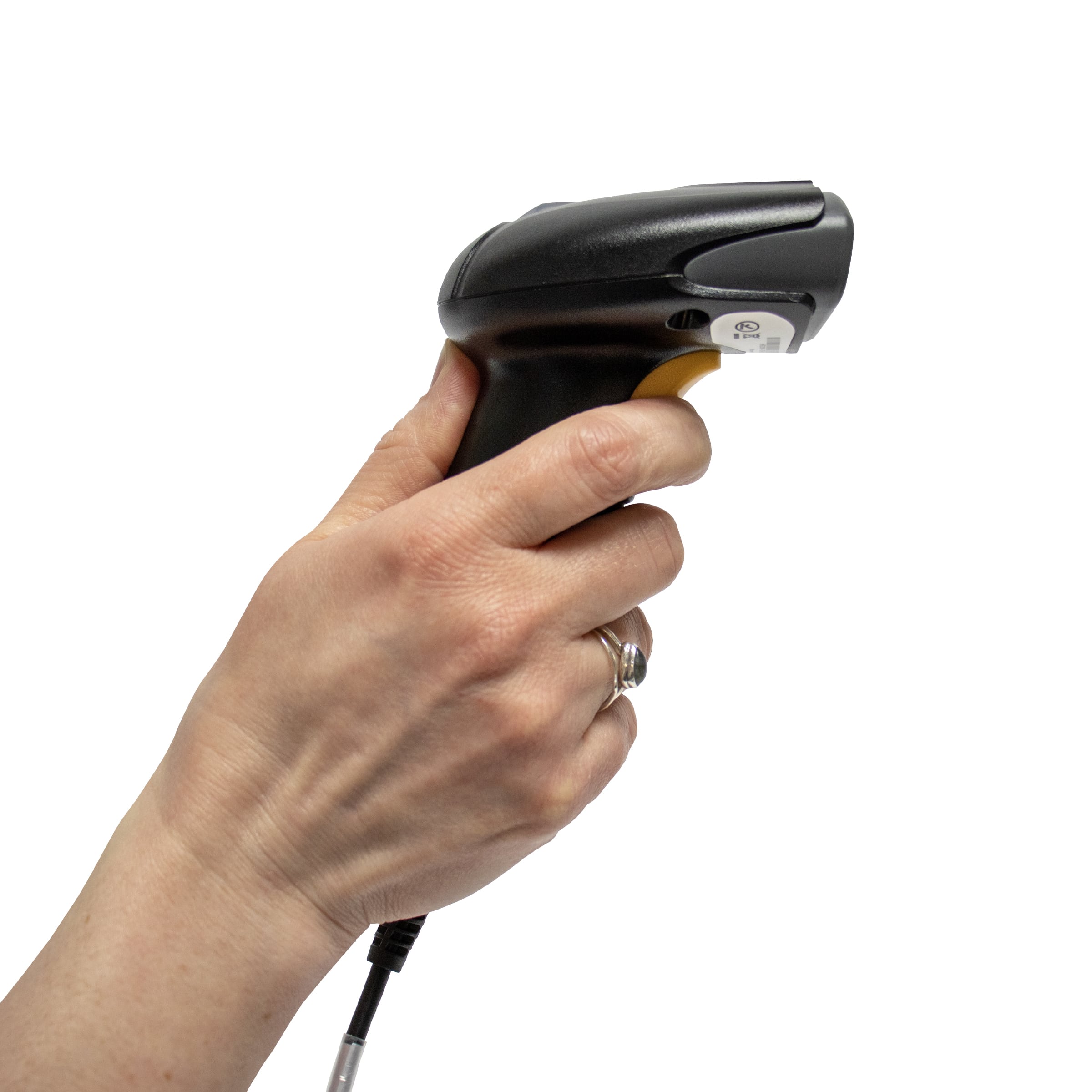 The handheld Star Micronics BSH-HR2081 wired scanner connects via USB cable to enable the waste-tracking functions in the DateCodeGenie app. It features 1D/2D scanning capabilities and a durable, high-performance construction.