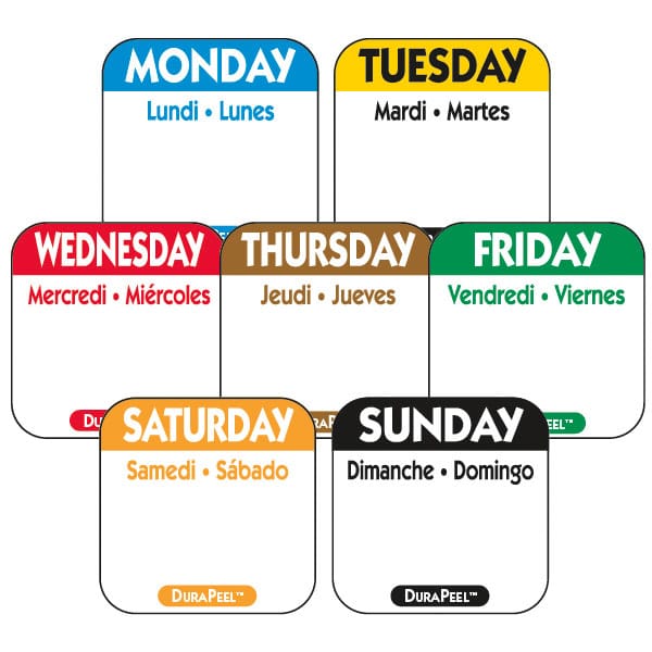 1" square DuraPeel food rotation labels can be removed before or after washing without leaving any residue. These synthetic coated labels are durable and don't break down in water.