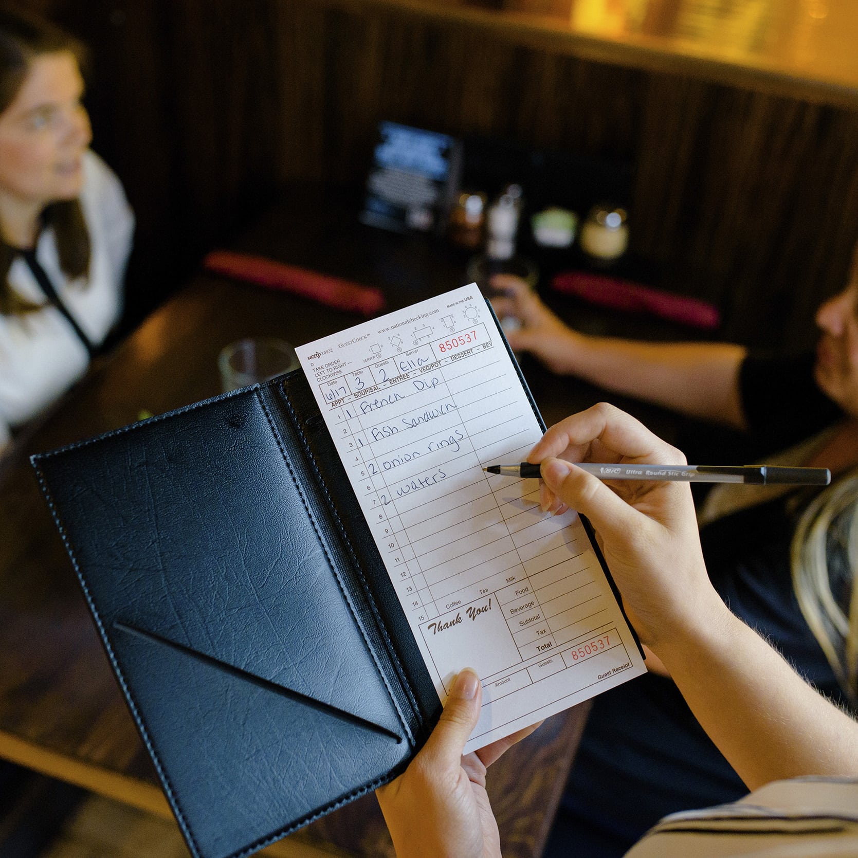 Large single copy cardboard guest checks are durable, heavyweight checks that appear similar to medium board checks but are wider and feature more lines. These guest checks are perfect for environments where checks are handled multiple times by servers, cooks and other staff.