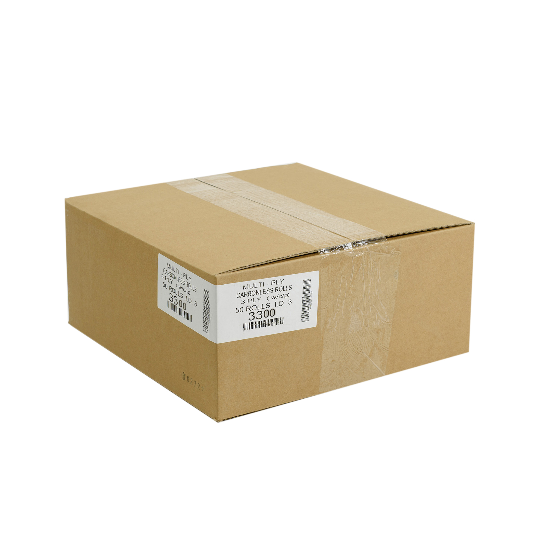 Three ply paper register rolls measuring 3" wide. These are most often used in cash registers. Features a white first ply, canary duplicate ply and pink triplicate ply.